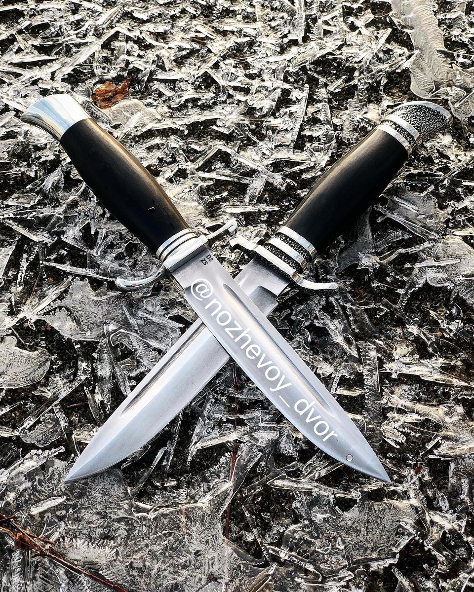 На фото представлены Финочки НКВД из инструментальной стали D2 , рукоятью из дерева граб и нашим авторским литьем 👌