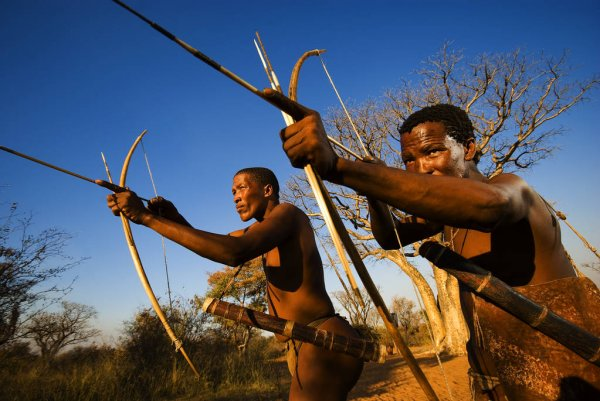 Более того, обезьяны с умственными способностями примерно 4-летних детей весьма хорошо выживают как собиратели и по случаю охотники, также как в прошлом ранние гоминиды с IQ около 40 баллов и размером мозга намного меньшим, чем у современных бушменов. Поэтому нет ничего удивительного в том, что современные бушмены со средним IQ примерно в 54 балла и диапазоном IQ в основном в пределах от 35 до 75 баллов способны выжить как охотники-собиратели и выполняя работу низкой и средней квалификации на фермах, чем некоторые из них занимались в последние десятилетия двадцатого века.