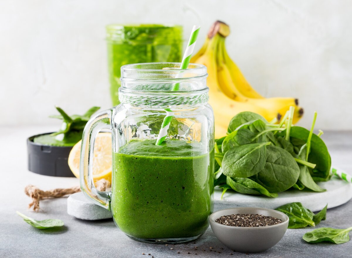 Шпинат промыть, обсушить и порвать руками. Для приготовления напитка можно использовать не только листья растения, но и его стебли.