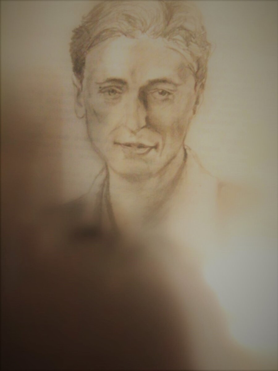 А вот это - старый-престарый автопортрет. Мне на нём с небольшим двадцать, я у рабочего стала в моей комнате-кабинете - тоже карандаш.
