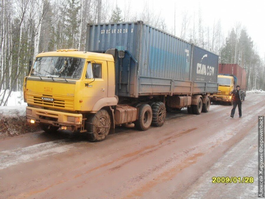 Местами зимник так хорошо накатывают и счищают неровности, что он начинает быть похож на асфальт