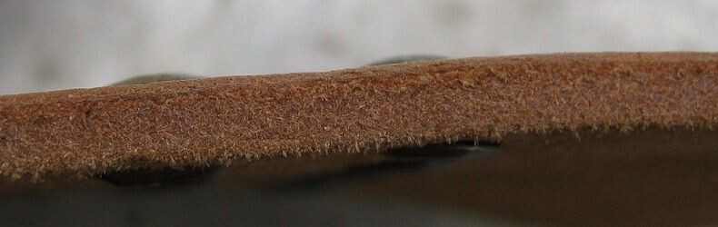 - Срезом. При проверке кожаного ремня срезом получается один плотный слой или два плотных слоя. Дерматиновый материал при такой проверке практически сразу отходит от тканевый основы, что приведет изделие к негодности.