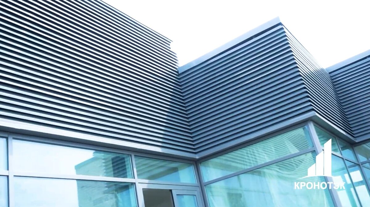 Ламели пользуются популярностью в качестве облицовочного материала для зданий различного назначения. Они хорошо комбинируют с жалюзи внешнего типа.