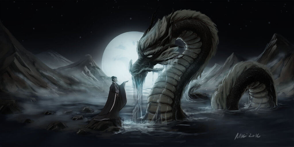В японской мифологии дракон Рюдзин — это бог моря, повелитель водной стихии. Он живёт на дне океана во дворце из красных и белых кораллов, украшенном драгоценными камнями. В его дворце есть снежный зимний зал, весенний зал, где растут вишнёвые деревья, летний зал со щебечущими сверчками и осенний зал с разноцветными кленовыми деревьями.