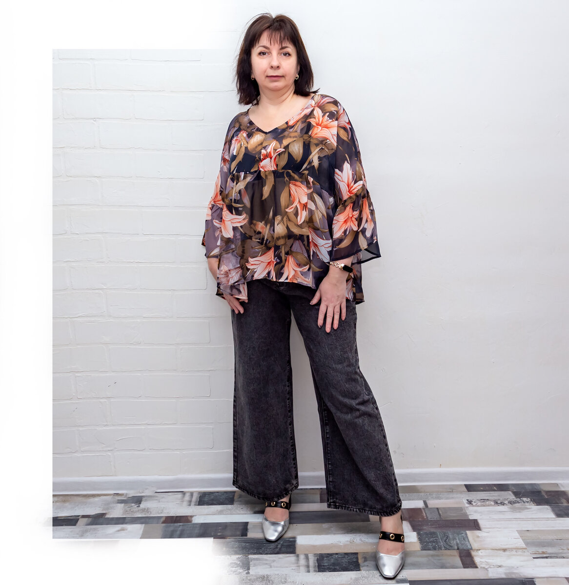 На мои параметры 104-94-114 размер сел оверсайз, как я и хотела. Блуза очень комфортная в носке.