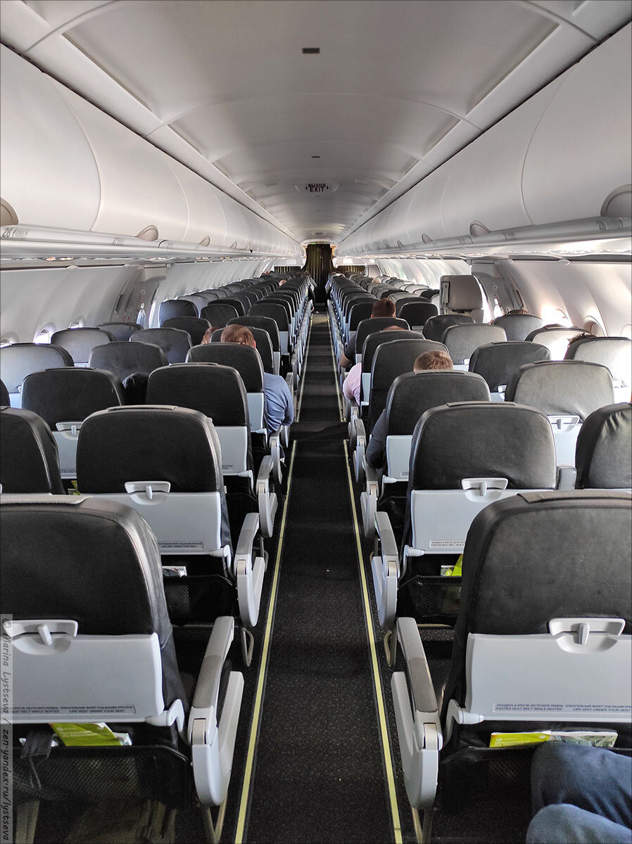 А320neo S7, помимо всех своих достоинств (более экономичный и т.д.) ещё и имеет удивительно широкий шаг кресел. Это я развалившись пытаюсь дотянуться коленями до соседнего кресла: