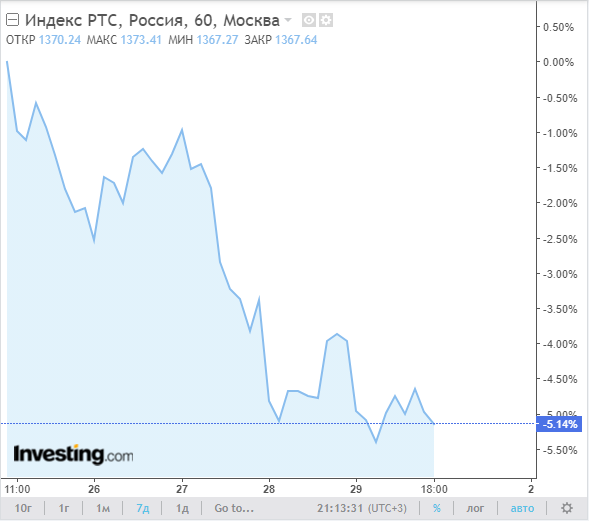 Что ж, рынки падают последние дни. Индекс РТС (MCX: RTSI) — фондовый индекс, основной индикатор фондового рынка России — за последние 7 дней упал на 5.14%.