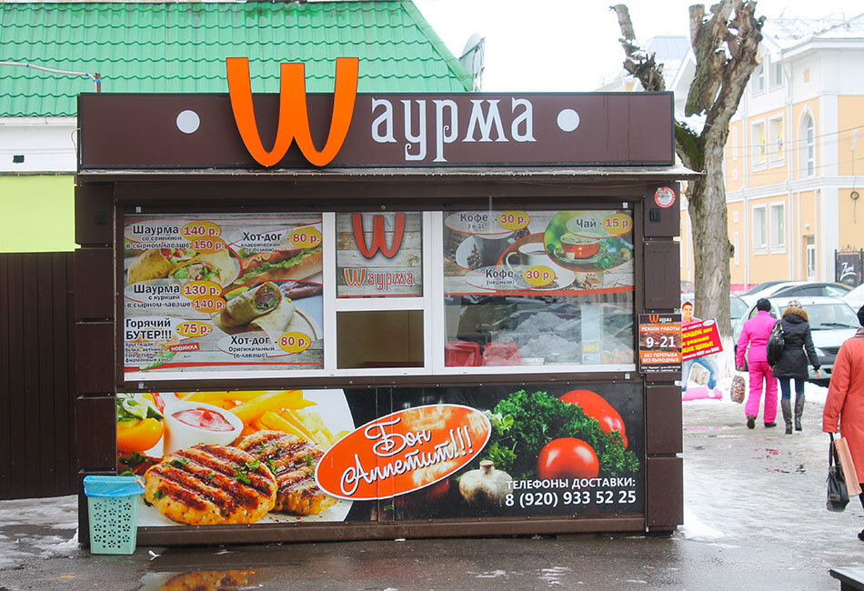 У нас очень много продуктовых магазинов, салонов красоты и киосков с "быстрой" едой типа шаурмы, шавермы.
