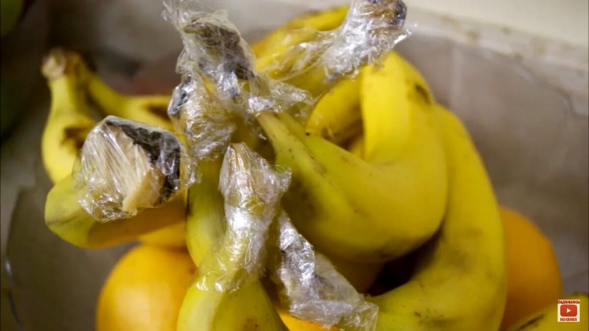 Бананы нужно хранить не в холодильнике, а при комнатной температуре. Так они дольше остаются свежими. А если обмотать их кончик пищевой пленкой или обыкновенным скотчем, они не будут портиться намного дольше.