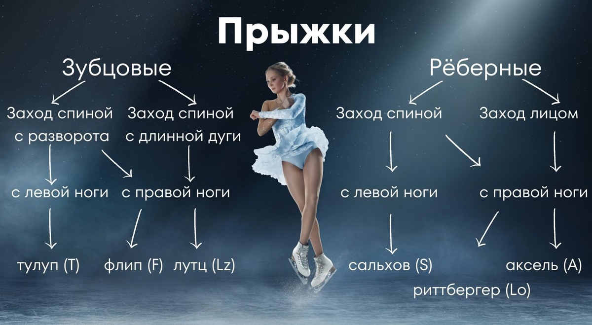 - Реберные - сальхов, аксель, риттбергер. Фигурист прыгает с той ноги, на которой скользит - прыжок реберный.