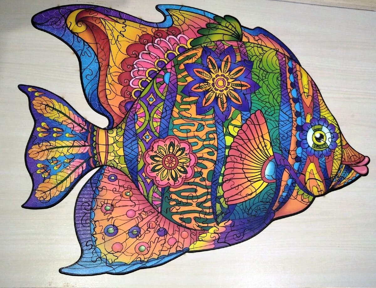 Ищем его в Фикс-прайсе. Кроме рыбки, встречаются еще и картинки волка, лисы, совы. Вариантов достаточно много, можно выбрать по душе. В основе лежит система антистресс-раскраски. Каждая деталь представляет собой маленькую фигурку морского обитателя, животного или другого представителя той группы, к которой относится весь пазл в целом.