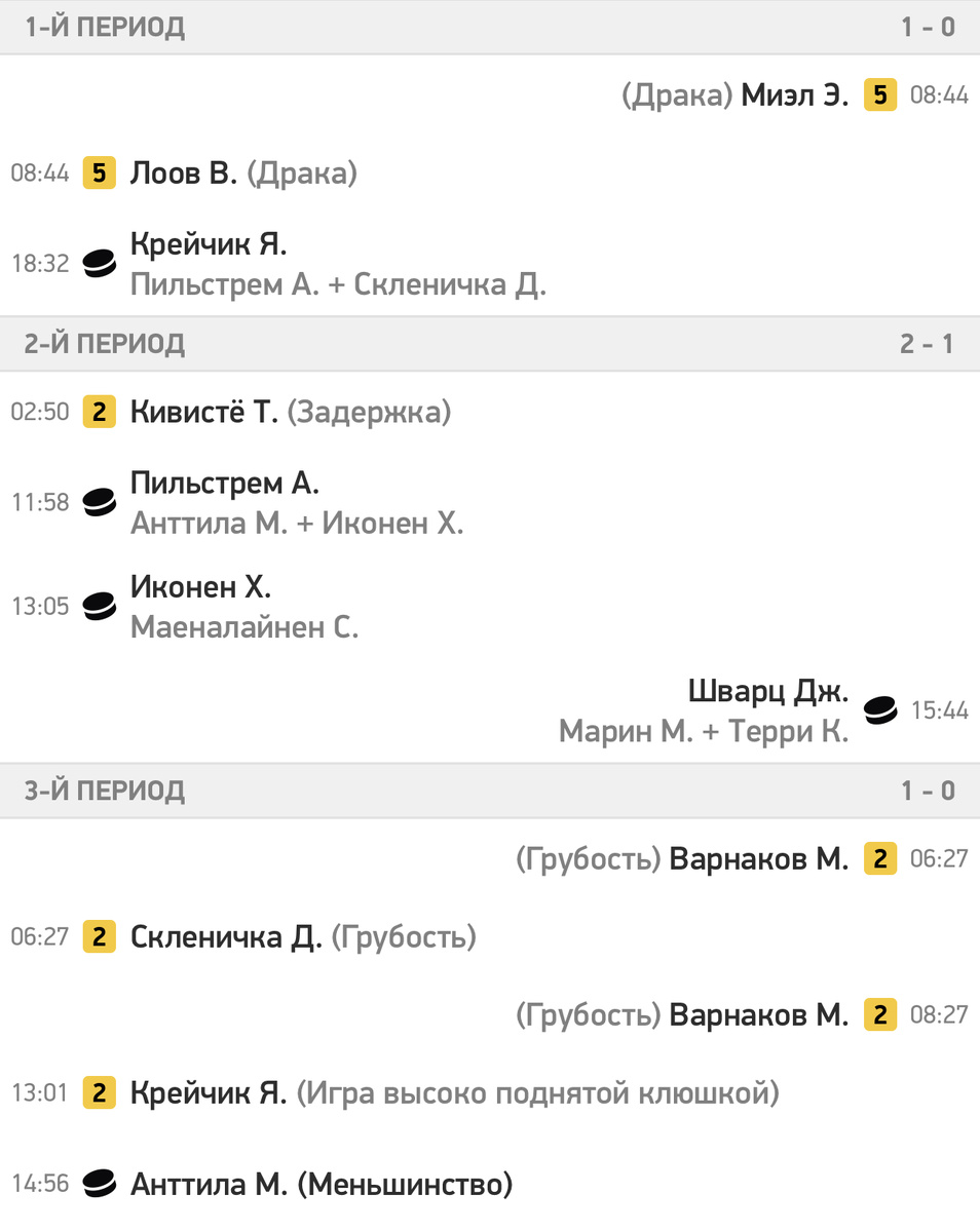 Хозяева отправили в ворота голкипера «Торпедо» Никиты Серебрякова четыре шайбы. Гости смогли ответить только одной шайбой Криса Терри . В составе победителей по 2 (1+1) очка набрали Антти Пильстрём и Марко Анттила .