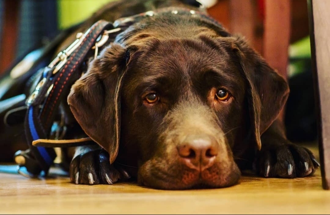 Здравствуйте! Я – пес-проводник. Меня легко узнать, на мне шлейка с жесткой ручкой (она называется дуга), а у моего человека белая трость и специальные документы.