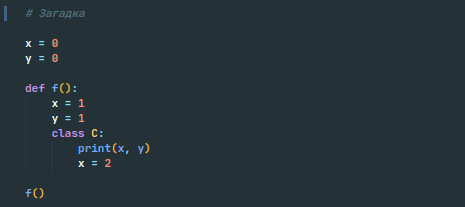 Наткнулся тут в телеграме на интересный вопрос, касающийся поведения переменных в Python. Сам факт, что автор загадки - Гвидо ван Россум уже заслуживает внимания[1]. А ещё подобные головоломки периодически любят задавать на собеседованиях.