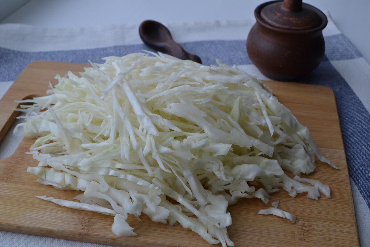 Итак, обычную белокочанную капусту шинкую тонкой соломкой.