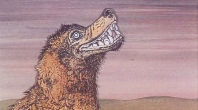 Мальчик нашарил рукой камень и швырнул в собаку. Попал в морду. Собака только дернулась, не издала не звука.
