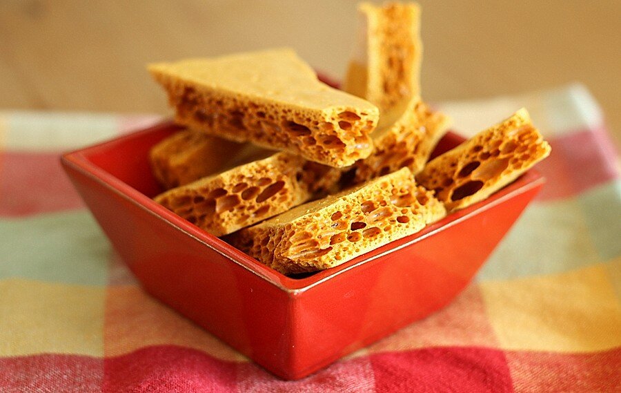Очень необычные конфеты, похожие на пчелиные соты, с насыщенным медовым вкусом.