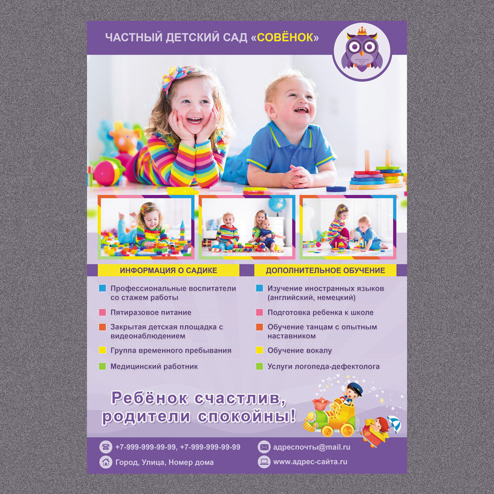 Флаер для частного детского сада или школы.