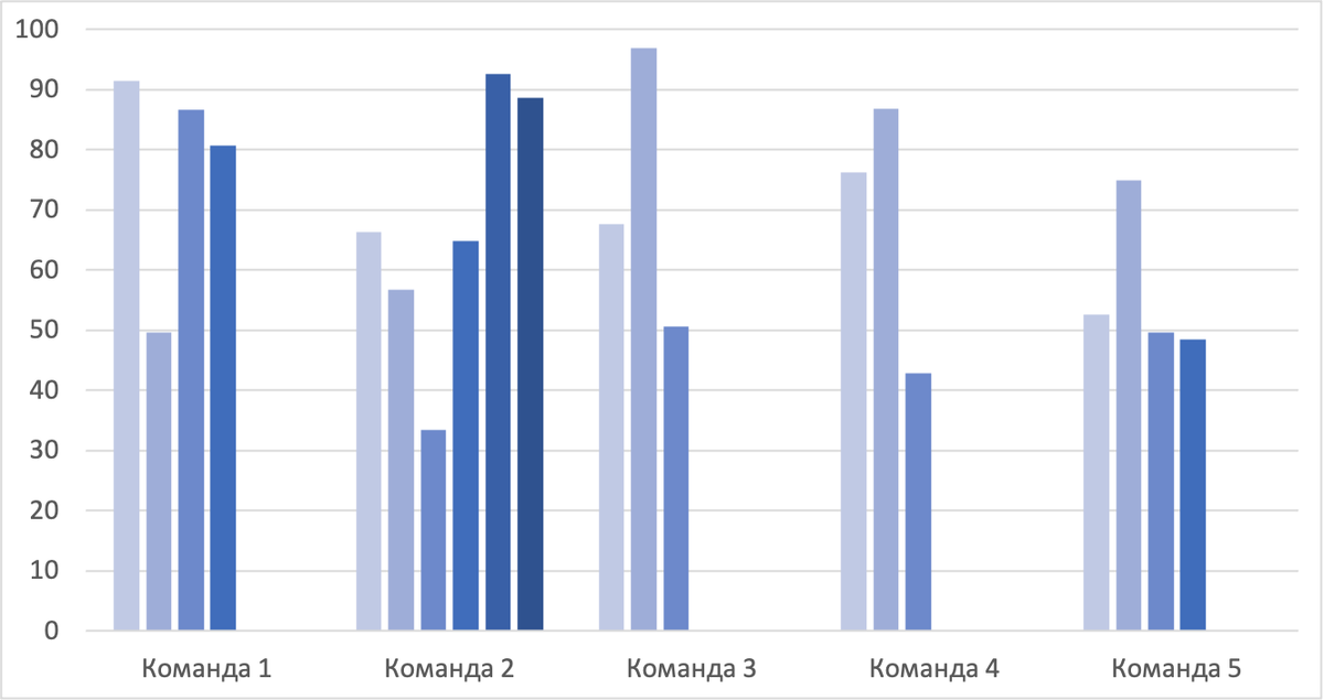 Командная эффективность — это когда команда демонстрирует максимальный результат.