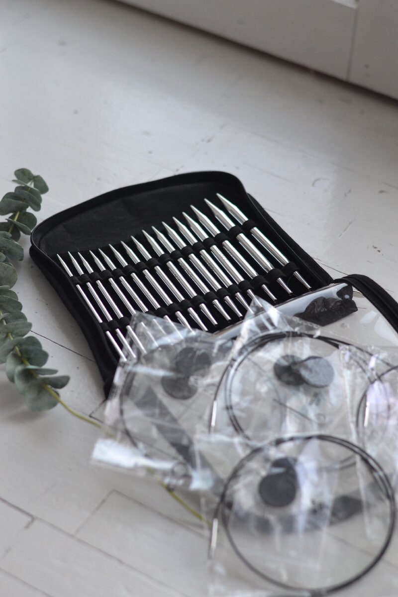 👌🏼8 пар латунных спиц (размер от 3,5 до 8), 4 лески разной длины (60,80-2 шт и 100), заглушки и ключики , удобный чехол - вот то, что мы получаем при покупке. За вполне адекватные деньги за набор.