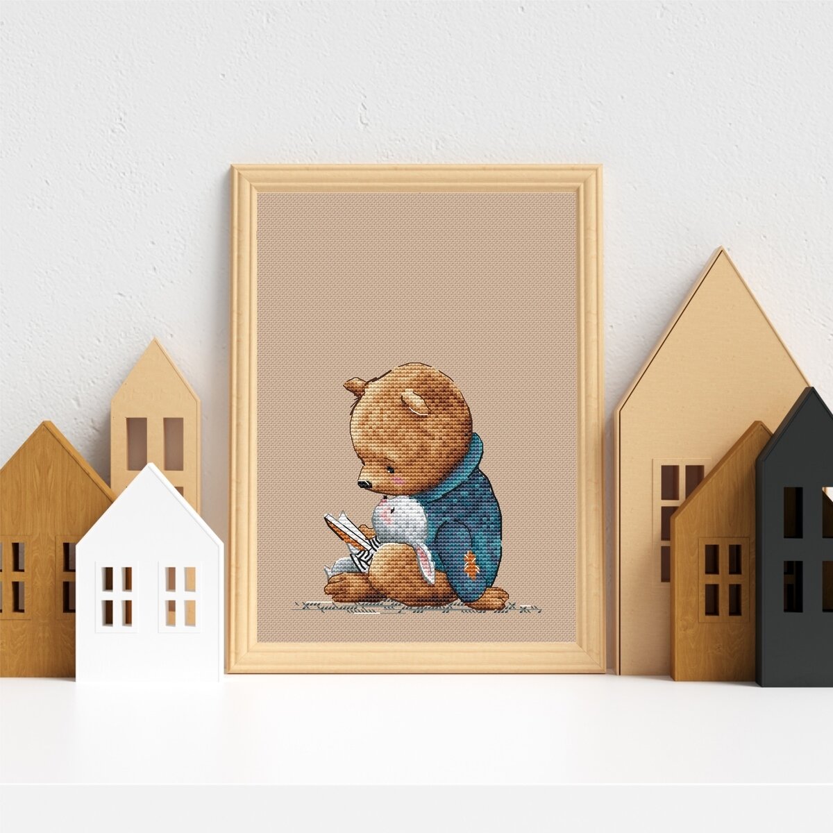 В общей сложности работа заняла шесть дней. Согласитесь, приятно за такой короткий срок получить такую милую работу. Дочка просто в восторге от нового "соседа". И даже выдала своего медведя для фотосессии.
