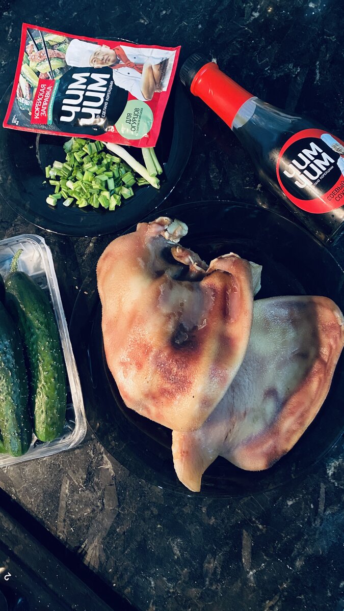 Свиные уши заранее отвариваем (я это делаю в мультиварке)
