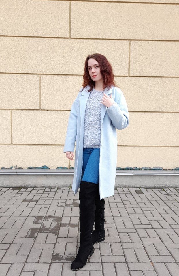 Я решила надеть пальто, потому как показалось, что оно подойдёт лучше других вариантов. Было желание надеть кожаную куртку, но осознала, что она не налезет на свитер.