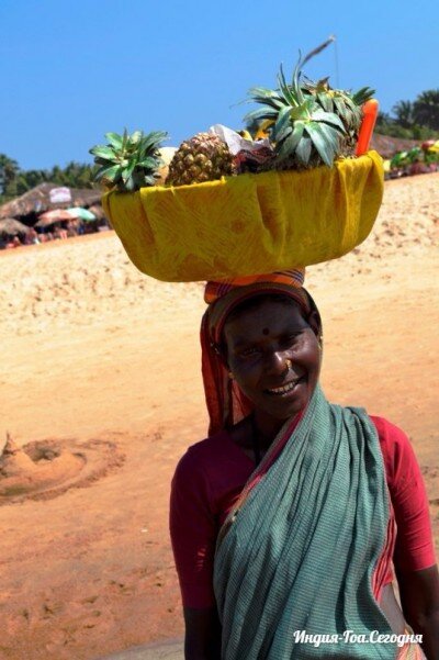 Мне понравилась очень старая индианка с огромной корзиной на голове, в которой лежали различные фрукты. Ей, наверное, было за восемьдесят. Но она работала, а не побиралась. Старушка просто предлагала туристам свои фрукты. Когда я её спросила: