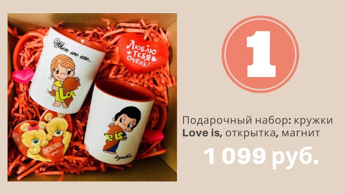1. Подарочный набор: кружки Love is, открытка, магнит