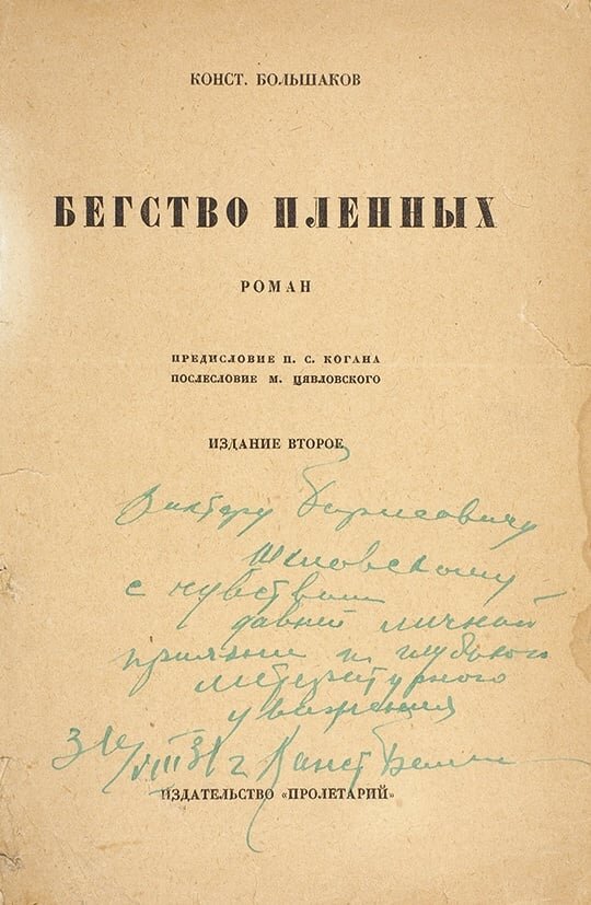 Дочитал вчера «Бегство пленных» Константина Большакова — признаться, к стыду своему, ранее об этом романе ничего не знал, да и о самом авторе не знал почти ничего, разве только мельком, в связи с прочей литжизнью 1910—20-х имя его смутно отзывалось.