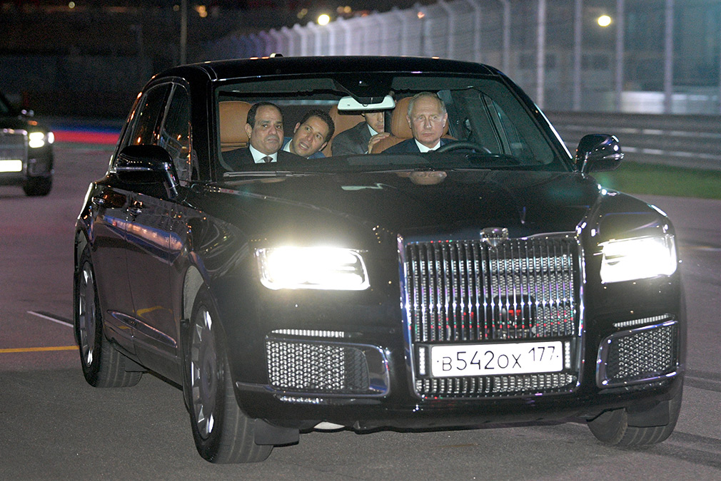 Управлять машиной Aurus Путину представилась возможность в Сочи в 2018 году на автодроме вместе с главой Египта Абдель Фаттахом ас-Сиси. После недолгой презентации линейки автомобилей президент лично прокатил иностранного коллегу по трассе автодрома Сочи. Характеристики у агрегата внушительные. Это 4,4-литровый двигатель V8 обладающий мощностью почти 600 л.с. с автоматической 9-ступенчатой коробкой передач и вдобавок система полного привода.
