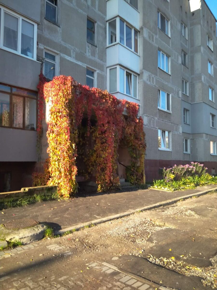 Купив квартиру, моя сестра изменила двор, об этом я уже писала. Также, на радость жильцам, подъезд стал узнаваемый издалека. У подъезда она посадила девичий виноград. Он очень быстро вырос, создавая зелёную арку. В моем представлении все арки создают ощущение церемониальности, пройдя через которые ты должен ощутить себя более счастливым.
