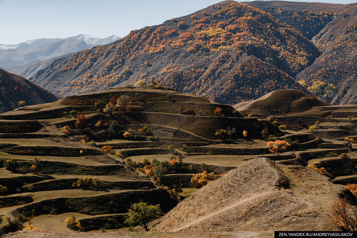 Если вы когда-нибудь были в Дагестане, то наверняка замечали на склонах ровные плато, идущие каскадом, как будто кто-то специально выравнивал горы. На самом деле - так оно и есть. Эти плато - остатки террасного земледелия, которое применялось (и всё ещё применяется) в Дагестане повсеместно и позволяло региону жить сыто и безбедно.