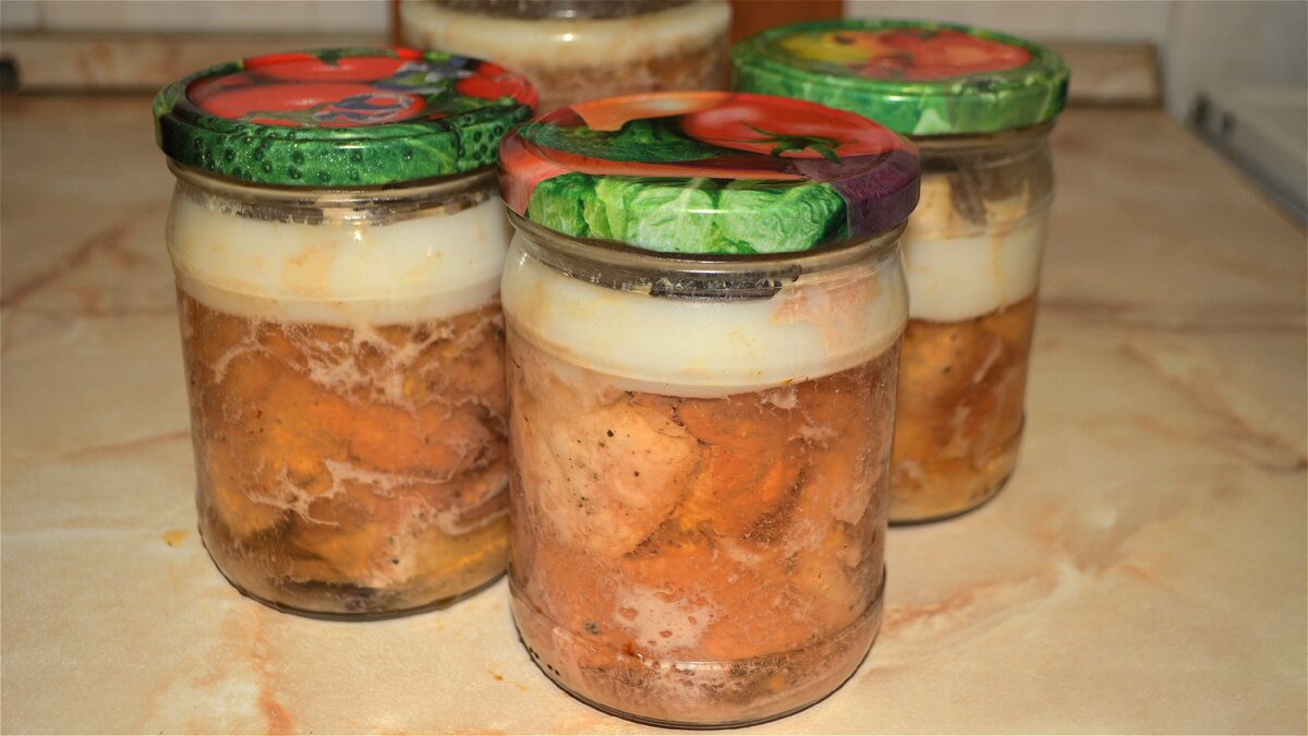 Ну, и напоследок, самая простая куриная тушёнка, я не большой фанат, но тем не менее это вкусно, рекомендую попробовать.