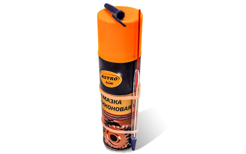 Ни один водитель не обходится без баллончиков с WD‑40 , силиконовой смазкой и прочей химией. Трубочки от них часто теряются после первого же применения. Я прикрепил к баллону нейлоновыми стяжками корпус шариковой ручки и храню трубочку в нем. Как именно — смотрите на фото.