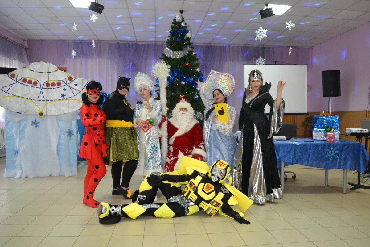 Дети рассказывают стихи, супергерои помогают с подарками. Когда всем подарят подарки, звучит новогодняя мелодия