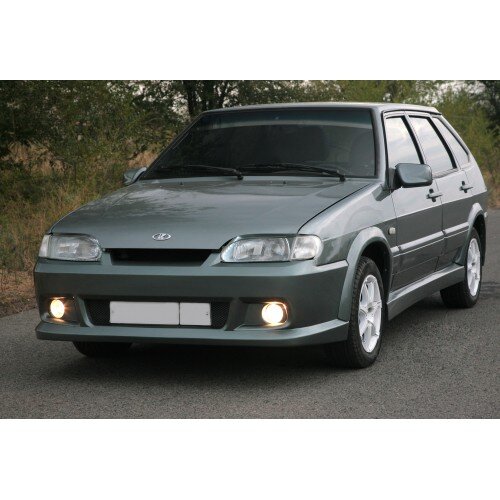 Комплект тюнинга Снайпер 2 на ВАЗ 2114 - аэродинамический обвес из ударопрочного АБС-пластика. Передний бампер имеет воздухозаборник большой площади плавно переходящий в нижнюю юбку, он придает объема четырнадцатой, что позволяет ей выглядеть агрессивнее и мощнее. Накладки колесных арок гармонично сочетаются с бампером. Воздухозаборник обеспечивает оптимальное охлаждение подкапотного пространства - двигателя, тормозных дисков и продувку арок, а нижняя юбка бампера создает дополнительную прижимную силу. Дизайн заднего бампера тюнинг комплекта Снайпер 2 на четырнадцатую с центральным скосом обеспечивает отвод воздушного потока из под автомобиля, увеличивая прижимную силу задней части. Продольные ребра повышают жесткость бампера, а специально созданные выходы на накладки задних колёсных арок, визуально увеличивают ширину автомобиля