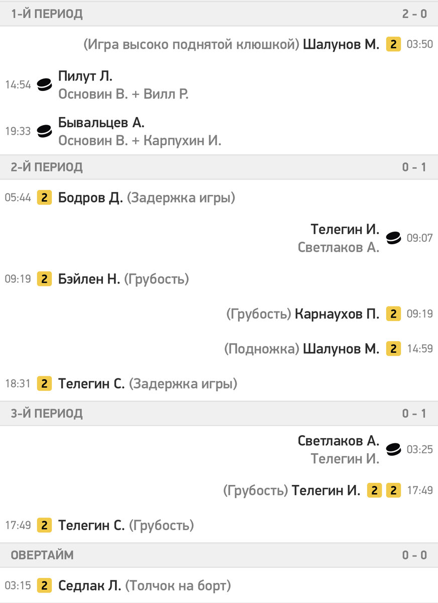 Решающий буллит в серии послематчевых штрафных бросков реализовал Андрей Локтионов . По два очка в составе победителей набрали Иван Телегин (1+1) и Андрей