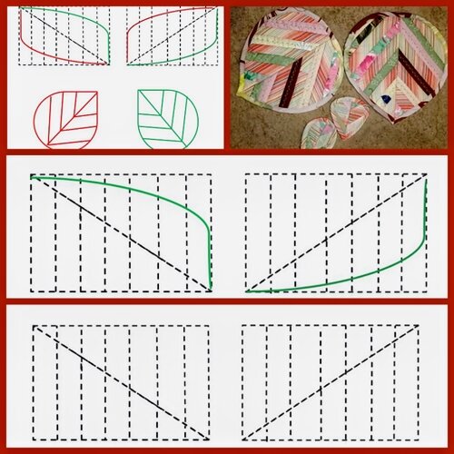 А теперь давайте сложим соответствующие половинки от разных прямоугольников - вот уже и виден рисунок будущих листьев: