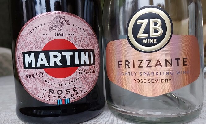 Новый год позади, женский праздник - впереди. После Нового года игристые можно купить со скидками, чтобы запастись ими на 8 марта. Я так и сделал. Но выпил их раньше. Конкретно - я купил Martini Rose Extra Dry (розовое экстра-сухое) за 999 рублей в сети "Виктория" и полусухое розовое Frizzante серии ZB от крымской "Золотой Балки" за 360 рублей, не помню, где.
