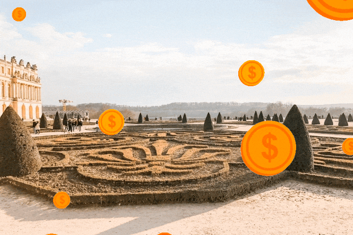 На основное строительство Версаля было потрачено 10,5 тыс. тонн серебра, однако и этих денег катастрофически не хватало. Доходило до того, что фонтаны парка включали поочередно, по мере того как король выходил гулять и приближался к тому или иному месту. Как только тщеславный Людовик отворачивался, фонтаны выключали ради экономии средств.