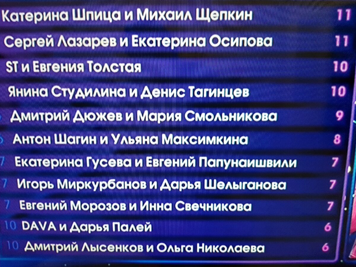 Уже 4 выпуск 7 февраля и сегодня похоже уйдут сразу 2 пары. Посмотрим удержались ли в шоу пара Степанов и Толстая, которых в прошлый раз спасло жюри. Две пары были внизу таблицы, вот итоги 3 выпуска
