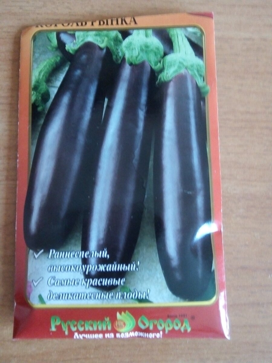 Король рынка. Вообще-то сначала это был гибрид, но не удержалась и собрала семена с самых красивых и урожайных кустов. Теперь у меня есть собственный разгибридизированный сорт. Это самые ранние баклажаны, цвет и завязь в конце мая, в начале июля можно пробовать. Плоды удлиненные, колбасной формы, первые достаточно крупные, последние помельче.
