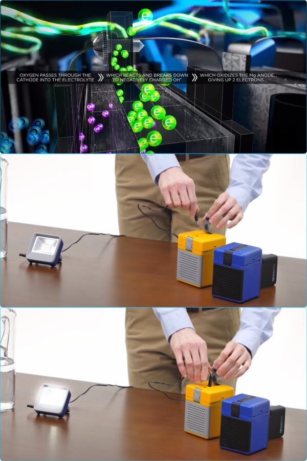 Уходя в поход или собираясь на пикник, не забудьте захватить с собой в дорогу небольшой топливный элемент, т.е. портативный энергогенератор. Мощность у него небольшая, но он вполне пригоден для зарядки телефонов (от 5 до 10) и работы светильников (от 50 до 100 часов работы в зависимости от освещённости) – всё это может обеспечить всего один комплект зарядных пластин.