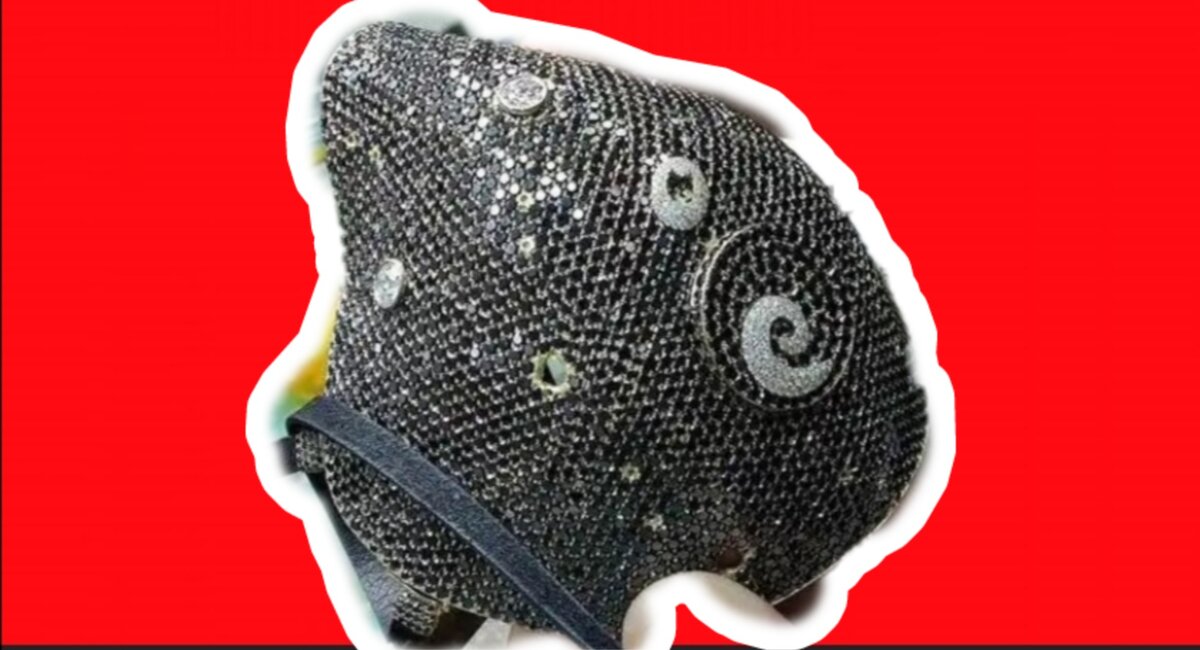 Аксессуар сделан из 250 граммов 18-каратного золота и инкрустирован 3608 черными и белыми бриллиантами.