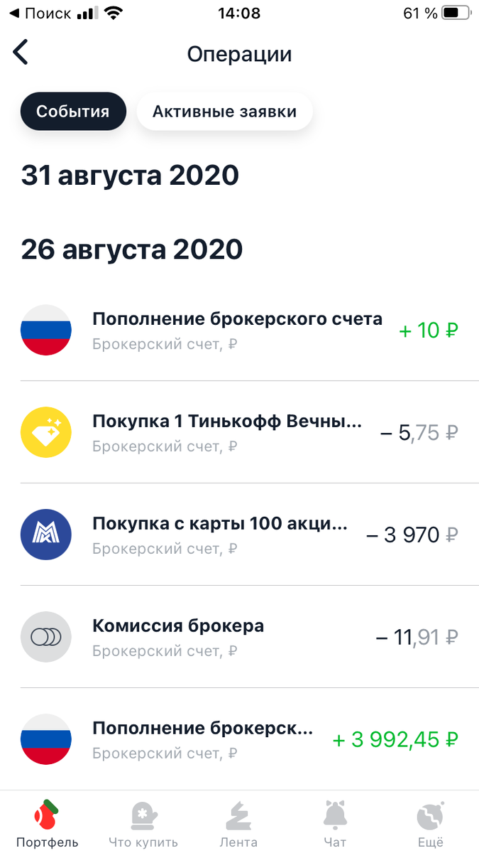 ВАЖНО! Инвестиции делать нужно каждому здравомыслящему человеку! Так как без них выжить нереально! Инвестиции это вложения с целью получения прибыли в будущем! Вы можете сказать, что мы и без тебя это знали… Учишь нас тут! Нет!!! Не учу, а делюсь впечатлениями, которые получаю в процессе работы! Так вот. Инвестиции это очень нелегкий хлеб!!! Это только в фильмах типа Волк с Уолт-стрит - все гладко и красиво))) Пробовал я себя ранее на FOREX впечатления, скажу вам двоякие! И пытался в криптобирже посидеть)))))) Чуть не поседел)))))))))) Сейчас пробую свой опыт применять на Мосбирже. Благо, что сейчас можно делать это из любого гаджета (просто как игру включить). И с теми средствами, которые есть. Пару-тройку лет назад минимум 300 000 рублей был вход(!) . Не каждый смог бы себе этого позволить! Сейчас конечно все проще! И 100 рублей годится. Признаюсь честно сам начал с чуть большей суммы 5 месяцев назад)))))) 53$)))) Подумаем вместе, что это за сумма? Около 4000 тысяч рублей? Сейчас баланс подходит к первой 1000 $))))))) Мелочи жизни! А все таки приятно) Приятно было видеть как все растет! Подписывайтесь на мою страницу и узнаете в следующей статье как менялся баланс моего брокерского счёта…