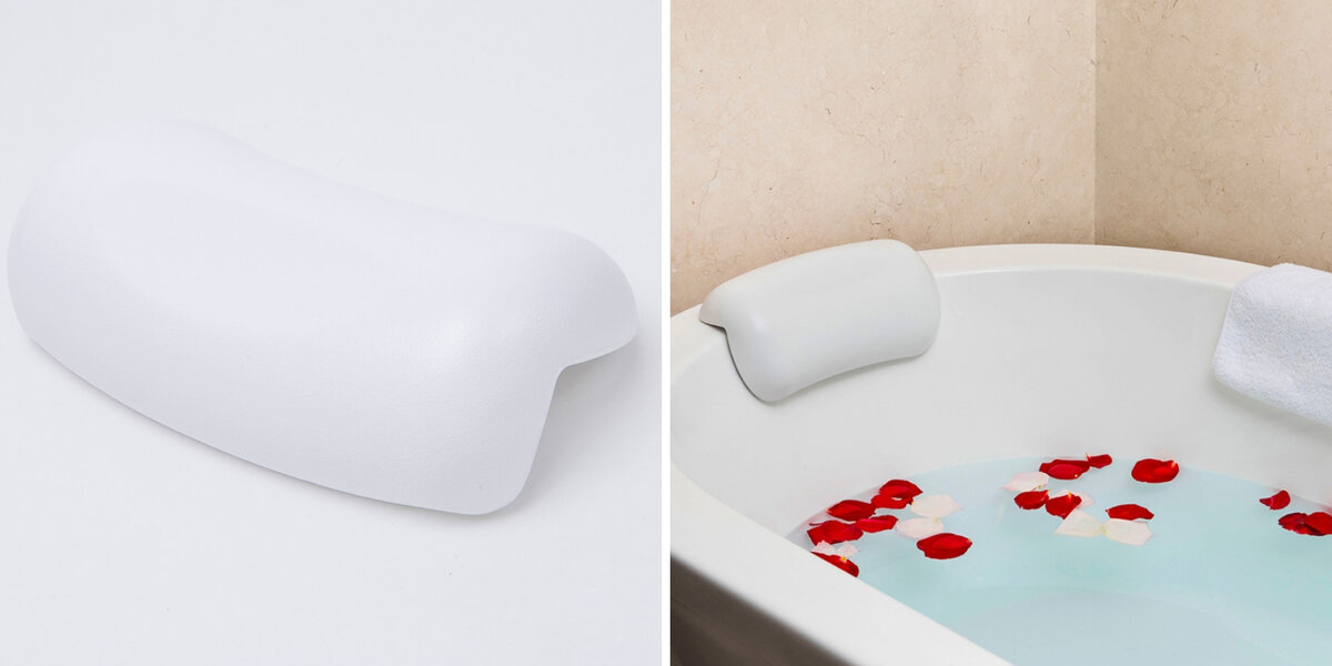 Удобная подушка, которая крепится к бортику ванны или к стене, позволит ощутить полный релакс.