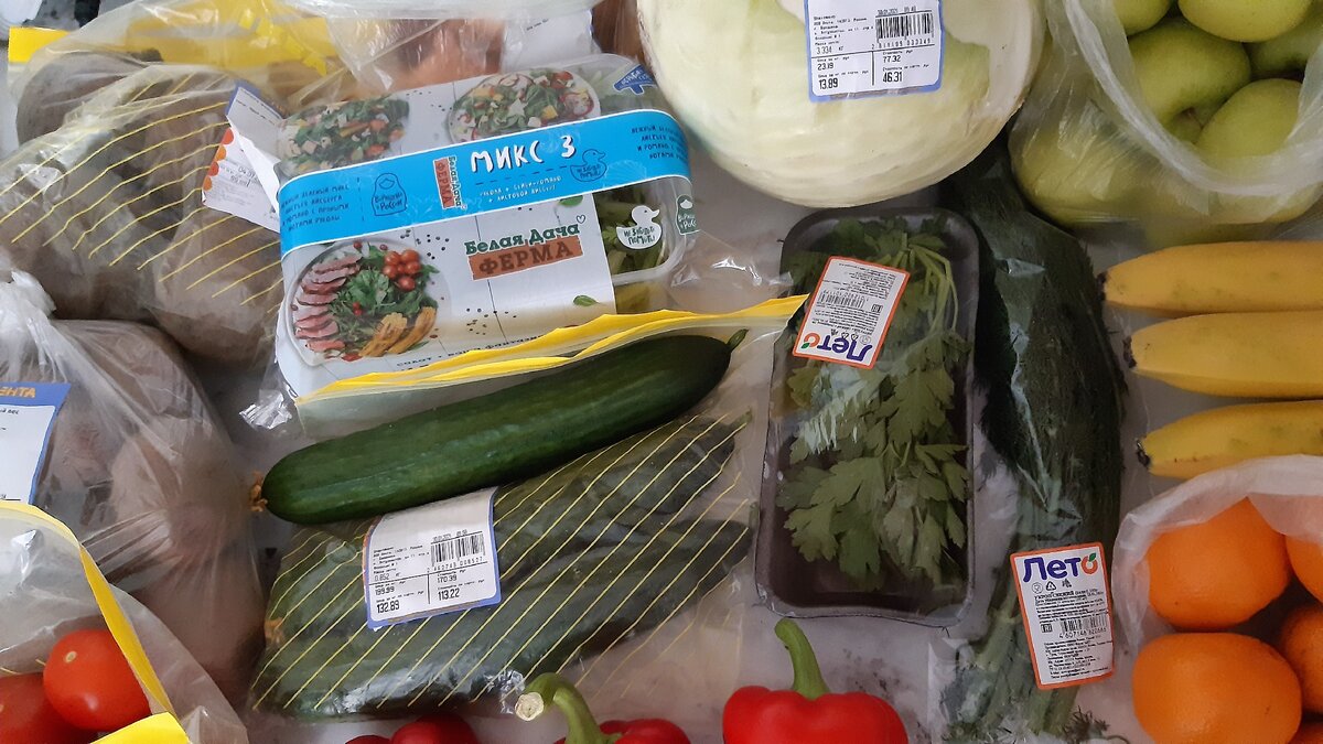 В Ленте я заплатила за все 2700 руб., а за фермерские продукты - 1085 руб.