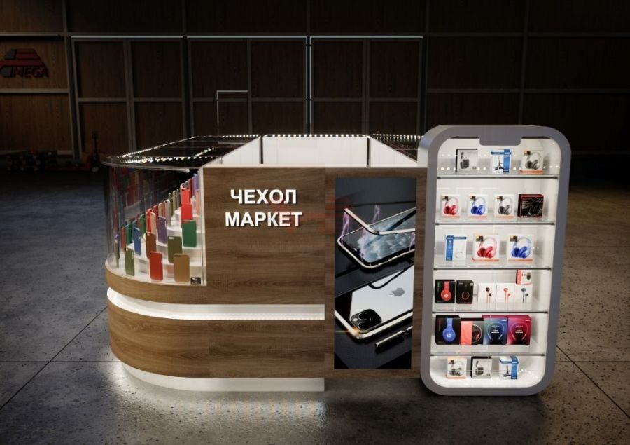 Визуализация торгового дизайн-проекта торгового острова аксессуаров для мобильных устройств. Проект был разработан и согласован за 5 рабочих дней. Будем рады видеть на нашем сайте в разделе дизайн торговых островов.