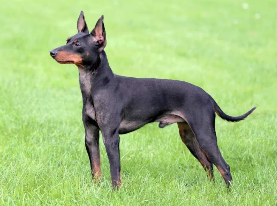 Английский той-терьер представляет собой словно бы уменьшенную копию манчестерского терьера, знаменитого в старину крысолова, который произошел от черно-под- п алого жесткошерстного терьера. Своей выносливостью эта порода в какой-то степени обязана левретке и уиппету. Сначала эта порода называлась в Великобритании манчестерским той-терьером, позднее — черно-подпалым той-терьером или миниатюрным черно-подпалым терьером. Официально порода признана Английским клубом собаководства в 1962 году под названием «английский той-терьер».